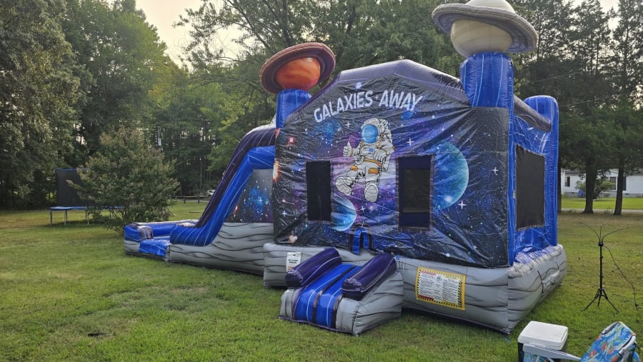 Perfect for birthday parties, school events, and community celebrations, the Galaxies Away Combo can be used wet or dry — making it the ultimate year-round inflatable. When used dry, kids can jump, climb, and slide through a galaxy of fun. On hot days, simply add water and transform it into an exciting water slide combo for a refreshing splash adventure!