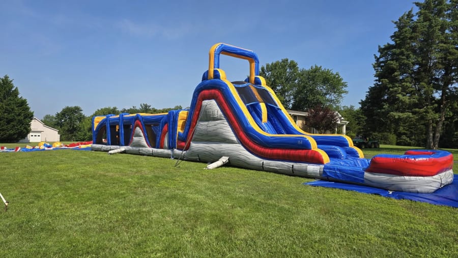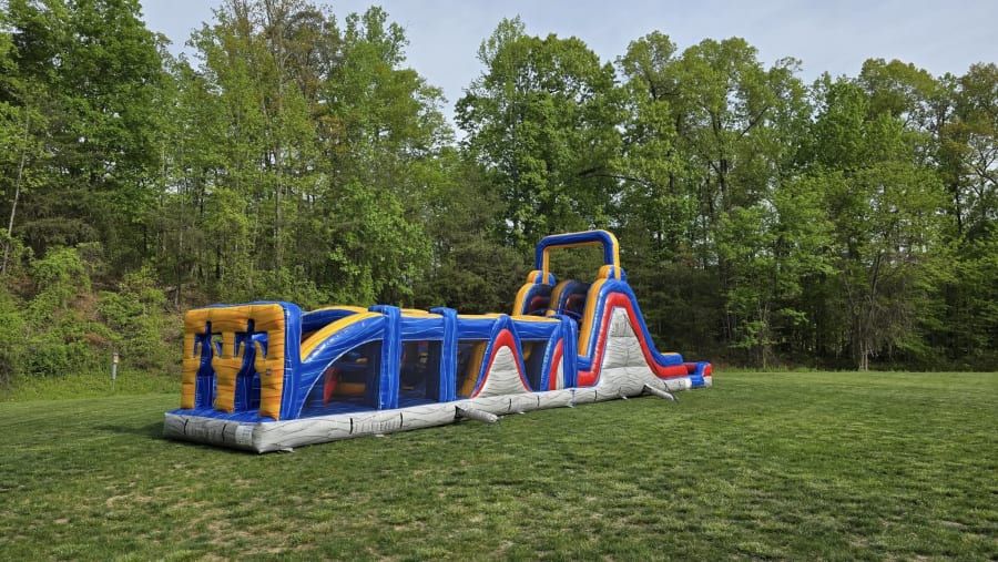 Get ready for the ultimate inflatable adventure with our 69' Dual Lane Obstacle Course, the perfect attraction for thrill-seekers of all ages! This massive obstacle course delivers 69 feet of nonstop excitement, featuring tunnels, pop-ups, climbing walls, and a giant slide finish — all designed for two participants to race side-by-side for the ultimate competition.