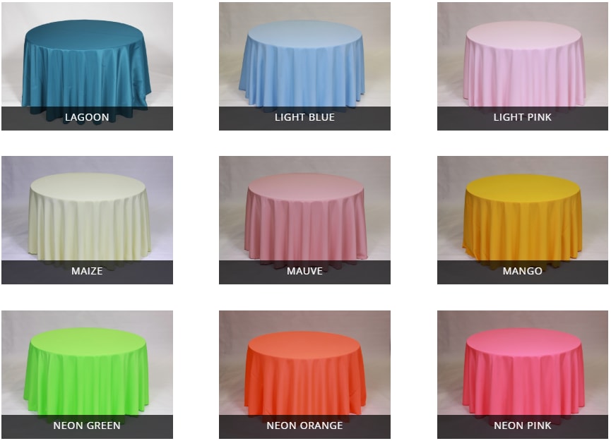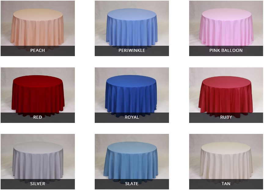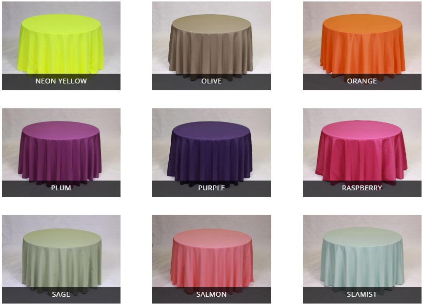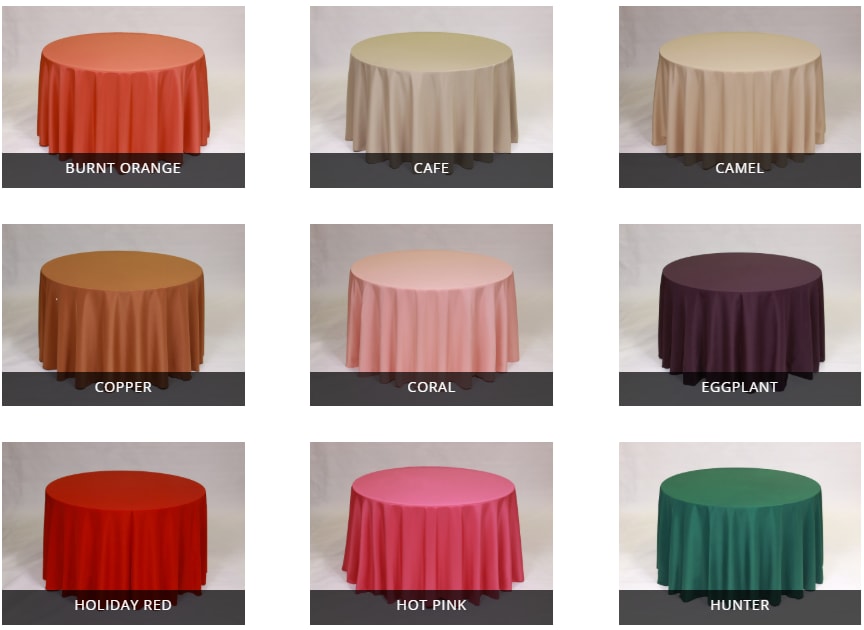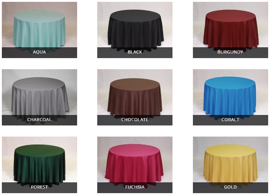 We proudly offer a full range of linen rentals to fit any theme, color scheme, or occasion, including: