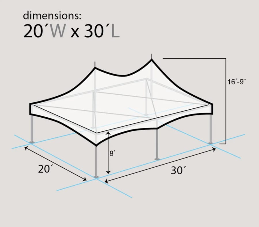 Take your event to the next level with our 20x30 High Peak Tent — a beautiful and functional shelter designed to impress your guests and keep them comfortable no matter the occasion. With its elegant high-peak design and durable construction, this tent is ideal for weddings, corporate events, graduation parties, backyard celebrations, and more.